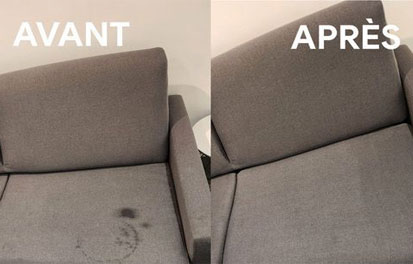 Les taches tenaces sont traitées avec des produits adaptés à chaque type de tissu. Nous utilisons des solutions douces mais efficaces qui éliminent en profondeur les taches sans endommager les fibres du sofa.